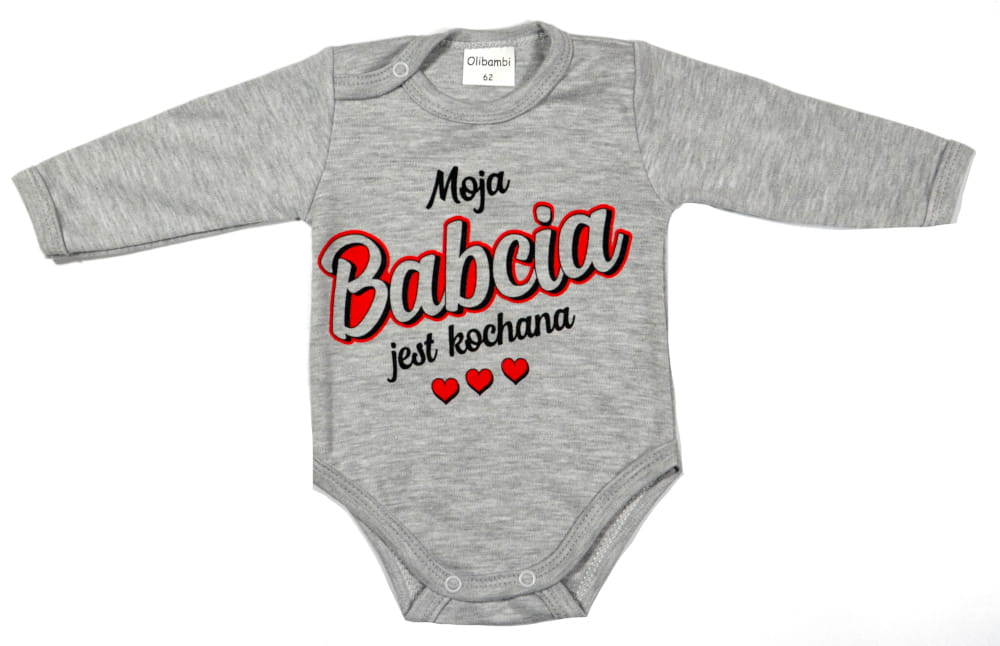 Body niemowlęce MOJA BABCIA JEST KOCHANA szary melanż